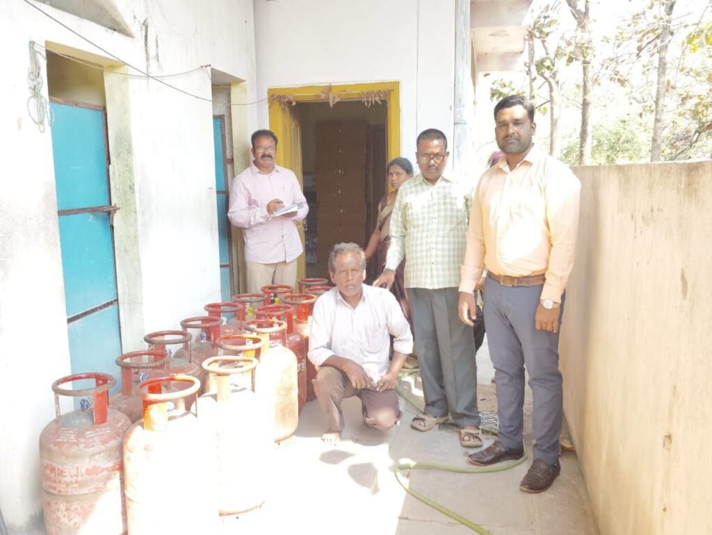 జనగామ ప్రతినిధి,(లీడ్స్ న్యూస్)::అక్రమంగా గ్యాస్ సిలండర్ నిల్వచేసి రీఫిల్లింగ్ చేస్తున్నాడనే సమాచారం మేరకు జనగామ జిల్లా పాలకుర్తిలో ఉప్పల శ్రీనివాస్ పై కేసు బుధవారం నమోదయింది. జనగామ సివిల్ సప్లై డిటి లచ్చు నాయక్ నేతృత్వంలో అధికారులు మధ్యాహ్నం అకస్మాత్తుగా దాడిచేసి అక్రమంగా నిల్వ చేసి ఉంచిన 15 సిలిండర్లను స్వాధీనం చేసుకున్నారు. అతనిపై 6ఏ కేసు నమోదు చేయడంతో పాటు పోలీస్ స్టేషన్ లో కూడా ఫిర్యాదు చేశారు. అనుమతి లేకుండా సిలిండర్లను నిల్వ ఉంచడమే కాకుండా రీఫిలింగ్ చేయడం నేరమని లచ్చు నాయక్ తెలిపారు. సివిల్ సప్లై అధికారులు ఇ. శ్రీనివాస్,ఇర్ఫాన్ తదితరులు ఉన్నారు.